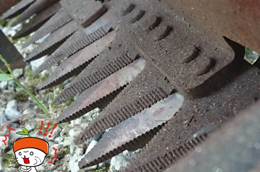 刈取刃の動作中に石などの硬質異物を噛み込んだ場合、刈刃が大きく損傷する事があります。