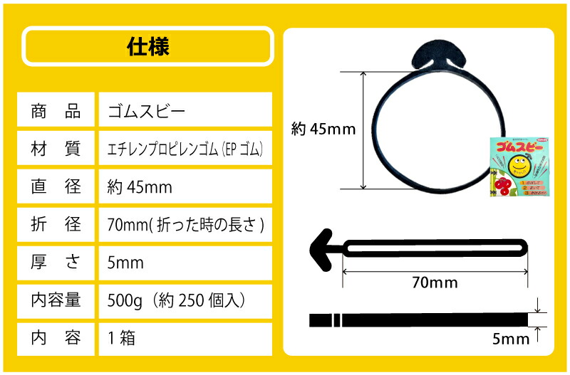ここまで紹介してきた「ゴムスビー」の商品詳細は以下の通りです。