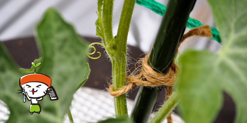 植物の茎は、支柱に沿わせて、まっすぐ誘引しましょう。