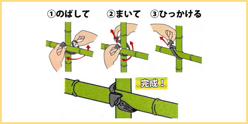 棚づくり同様、支柱などが細い場合はゴムスビーを2~3重にして巻き付けましょう。
