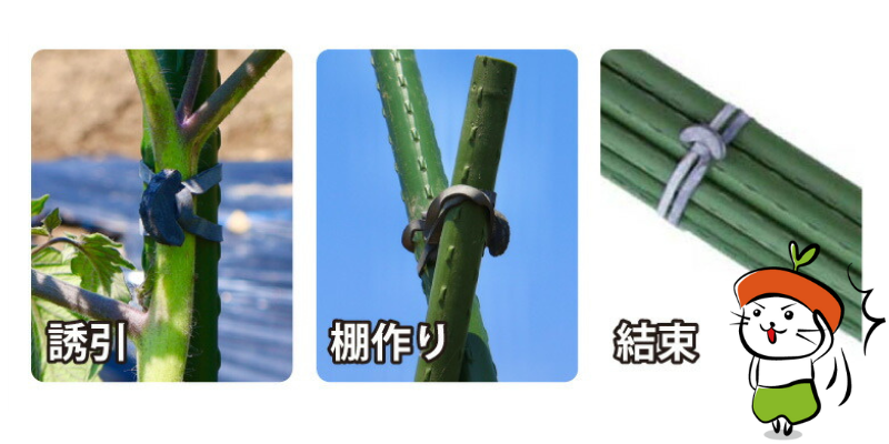 作物の誘引や栽培棚づくりでの使用方法について説明します。