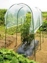 パイプとシートでトマトの雨よけ |