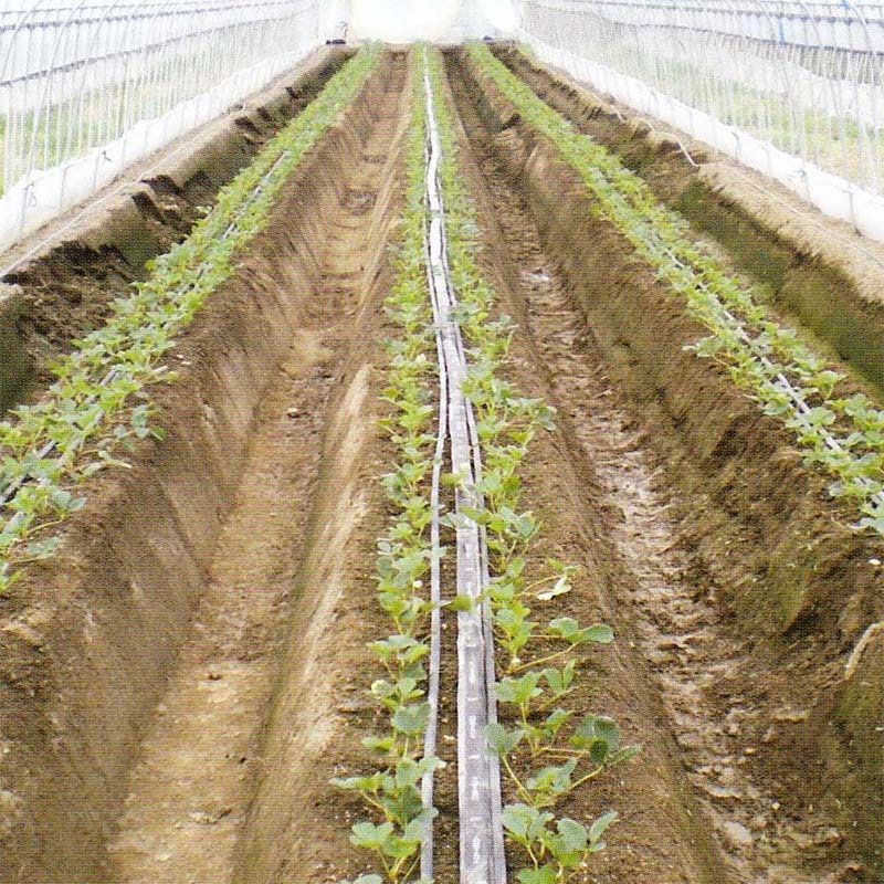 地表灌水は畝間に散水チューブやスプリンクラーを設置して水を撒く、