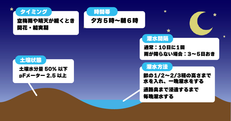 ハウス栽培のように雨が入らない環境や、乾燥しやすい夏場などに必要とされます。