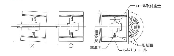 主軸ロールと副軸ロールのロール幅がくい違いのないように取り付けてください。