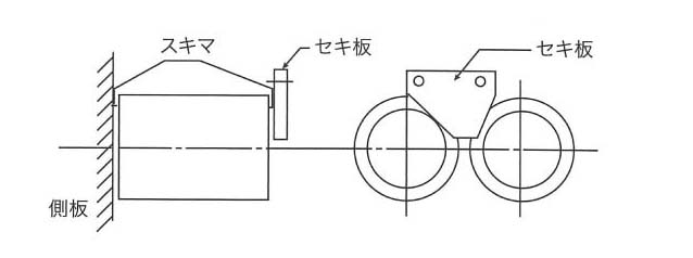 セキ板を取付け、手でロールを廻しロールが側板とセキ板に当たらないか確認する。