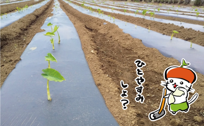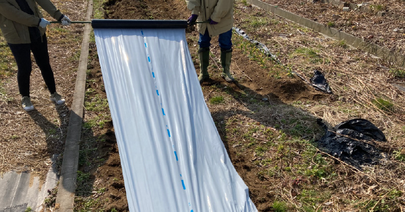 畝から水分が蒸発してしまいますがマルチシートで覆うことによって蒸発を防止します。