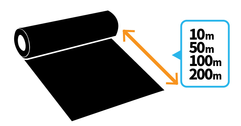 マルチの幅には、75㎝、85㎝、95㎝、110㎝、120㎝、150㎝、180㎝、210㎝、230㎝、270㎝など、実に多くの種類があります。畝の側面もカバーすることを考え、畝幅より30〜50㎝くらい幅広のものを選びましょう。