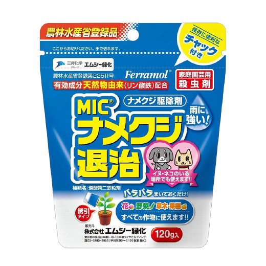 雨や湿気に強く、湿気の多い場所でも効果が持続します。ナメクジ駆除効果は1~3か月持続します。
