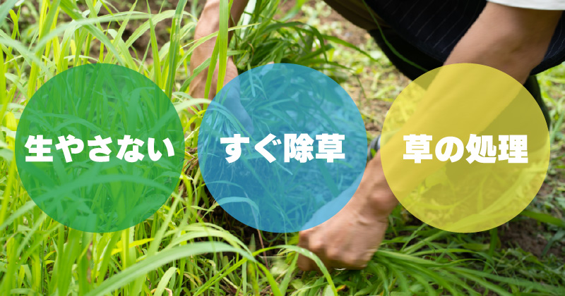 「生やさない」「すぐ除草」「適切に処理」を徹底しましょう。