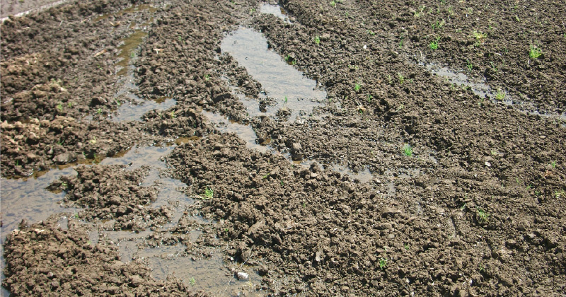 粘土質は隙間が少なく、水が浸透しにくいため、水はけが悪くなります。