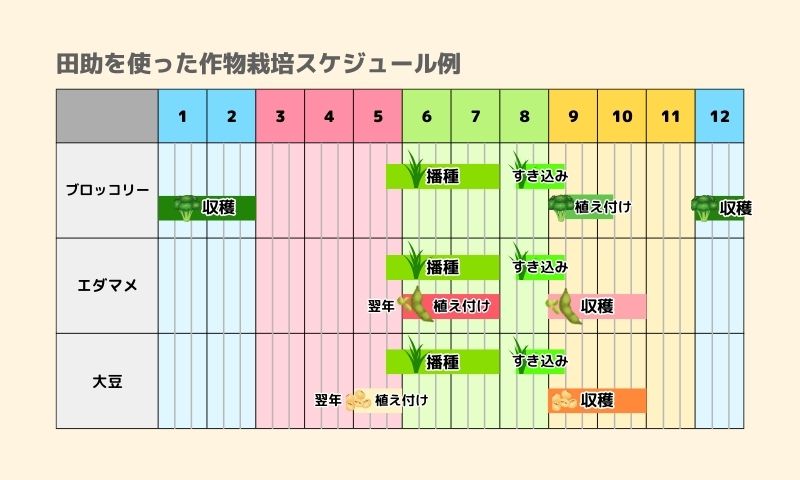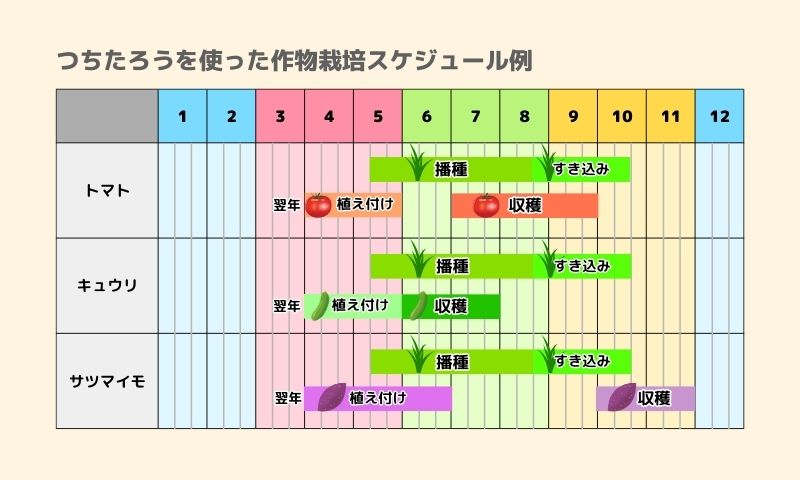 また、緑肥作物の種まき、育成、土にすき込む作業など、追加の労力が必要です。