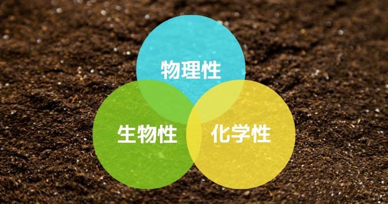 物理性(作土の深さや透水性、通気性など)・生物性(有機物の分解能力、微生物の量など)・化学性(土壌pH、土壌中の養分など)の三要素がいずれも良好だと、その土壌は地力が高いと言えます。