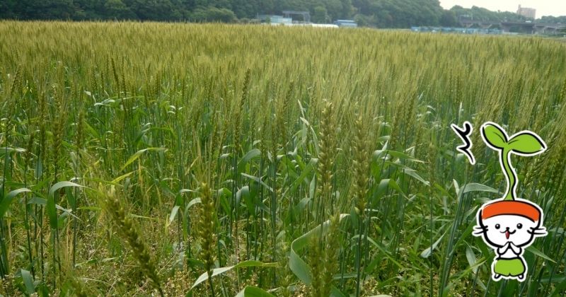 おたすけムギは大麦で、暑さに弱く、この性質を利用してあえて春~初夏に植えることで