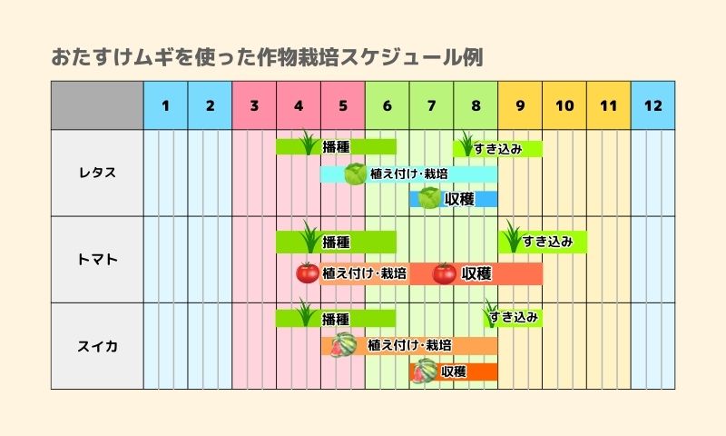 →雑草が生える前に草マルチで覆える!枯れあがりも早いため、他の作物と競合しにくい
