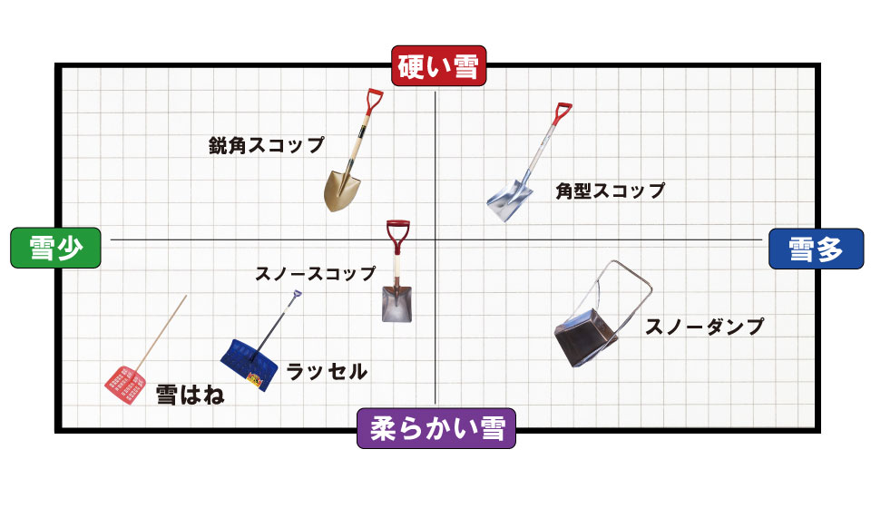 硬く多い雪には「角スコップ」