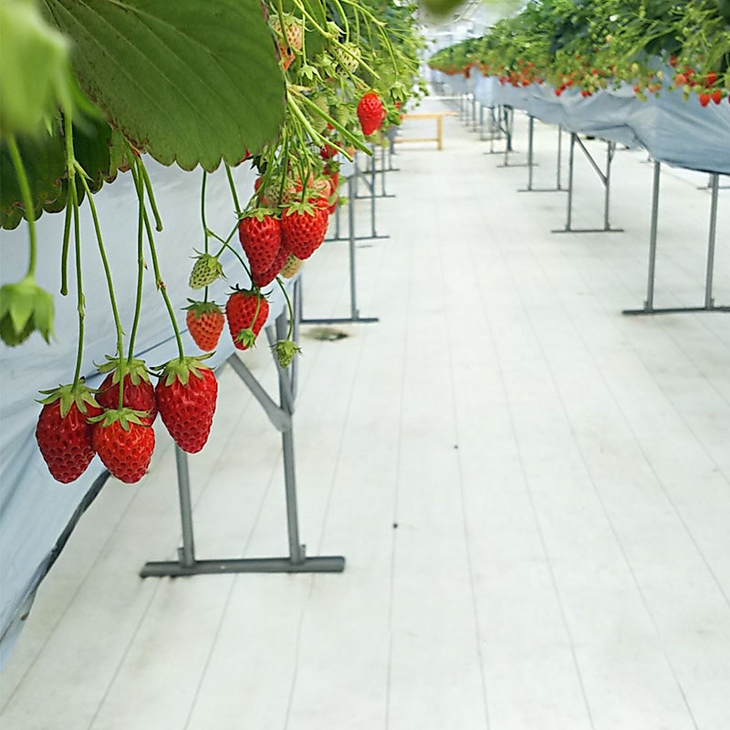 現在、イチゴ栽培の多くはビニールハウスを利用した施設栽培で行われています。