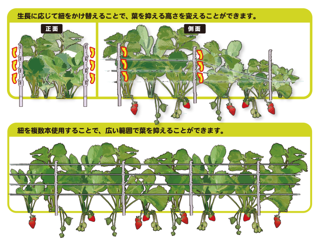 茎折れ防止に|クキサポートアーム&イチゴ用ネット