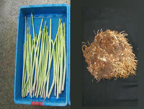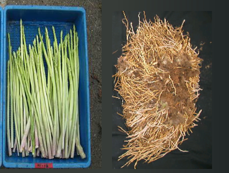 下の画像はアスパラに「鉄力あくあ®F14」を施用しなかったもの(左)と、施用したもの(右)です。