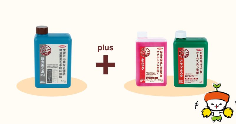 「鉄力あくあ®F14」と「ホスマグ」、「ALA-FeSTA(アラフェスタ)」を混用してみましょう。