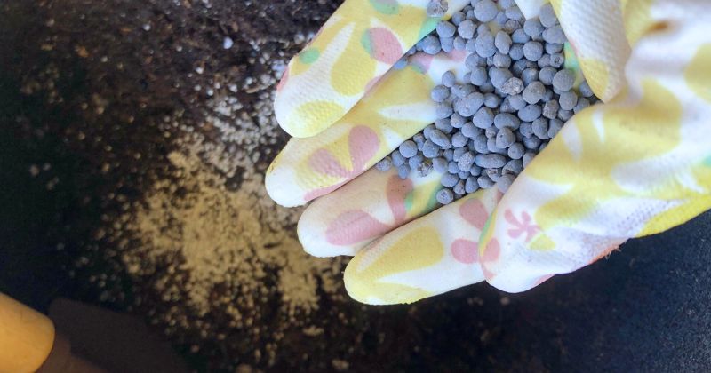 2週間に1回、一株あたり10g程度を目安に化成肥料を根もとにまきます。